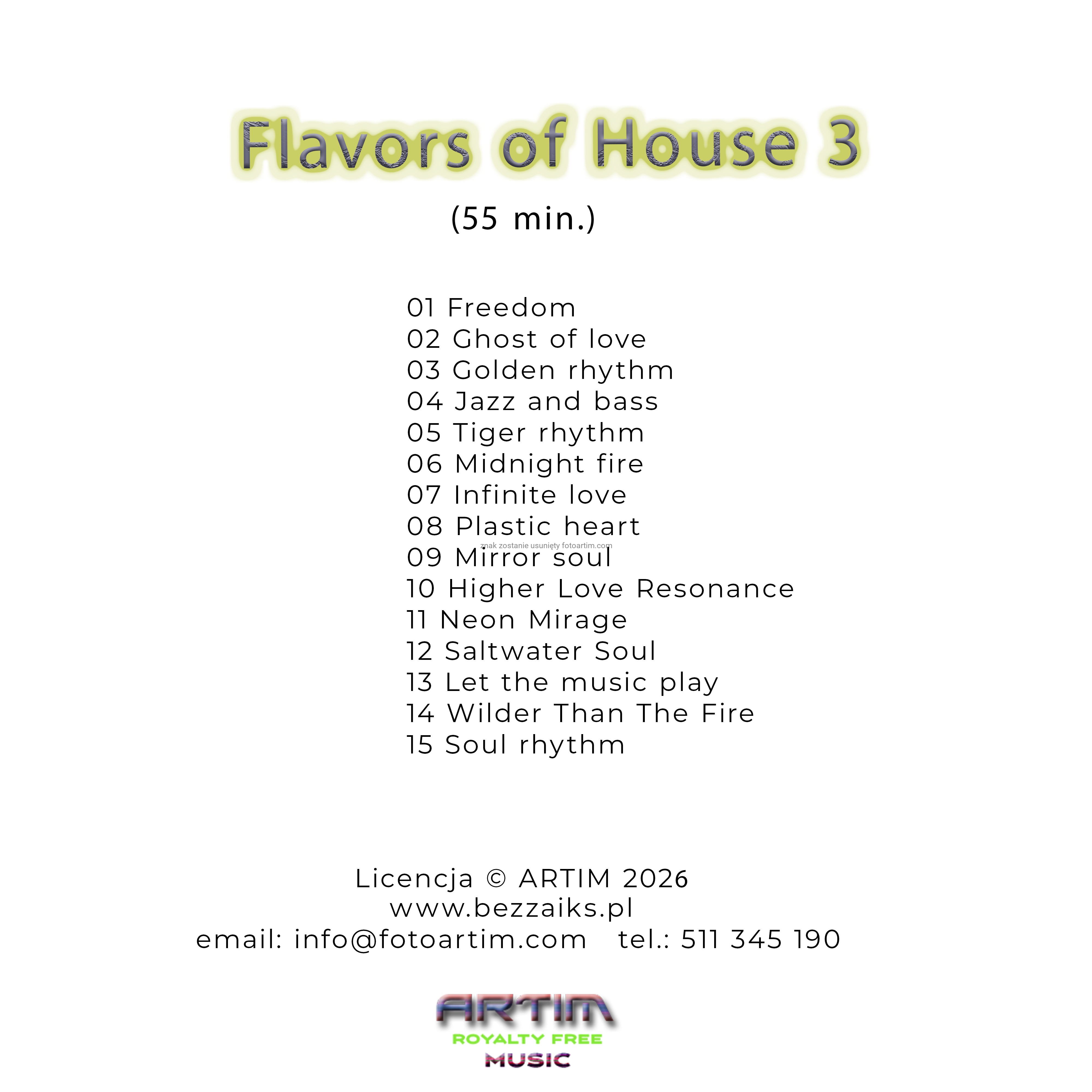3. Flavors of House 3 – 15 utworów (55 min) pełnych energii i wpadających w ucho melodii z wokalnymi inspiracjami retro.
